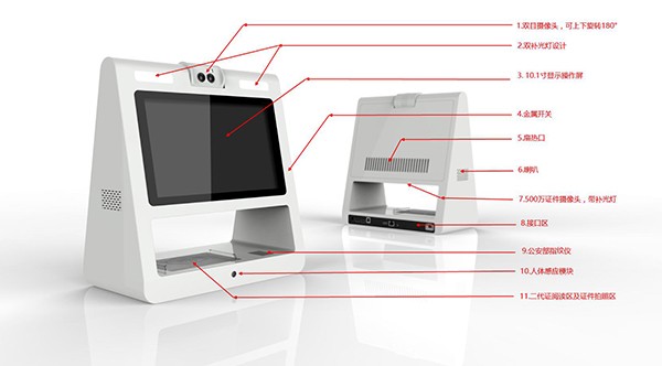11. 二代證閱讀區(qū)及拍照區(qū),用于讀取二代證及證件拍照區(qū)