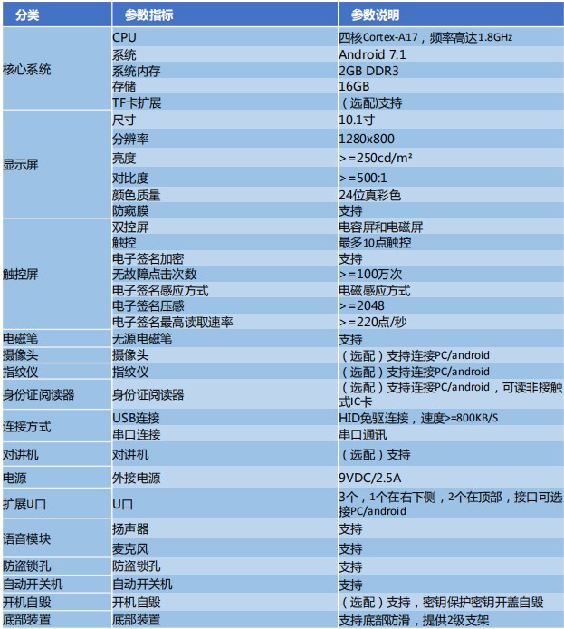多種功能模塊安卓系統(tǒng),支持電子簽名、二代證識(shí)別、指紋識(shí)別、人臉比對(duì)、 信息交互、服務(wù)評(píng)價(jià)、多媒體廣告等,提供增值服務(wù)。