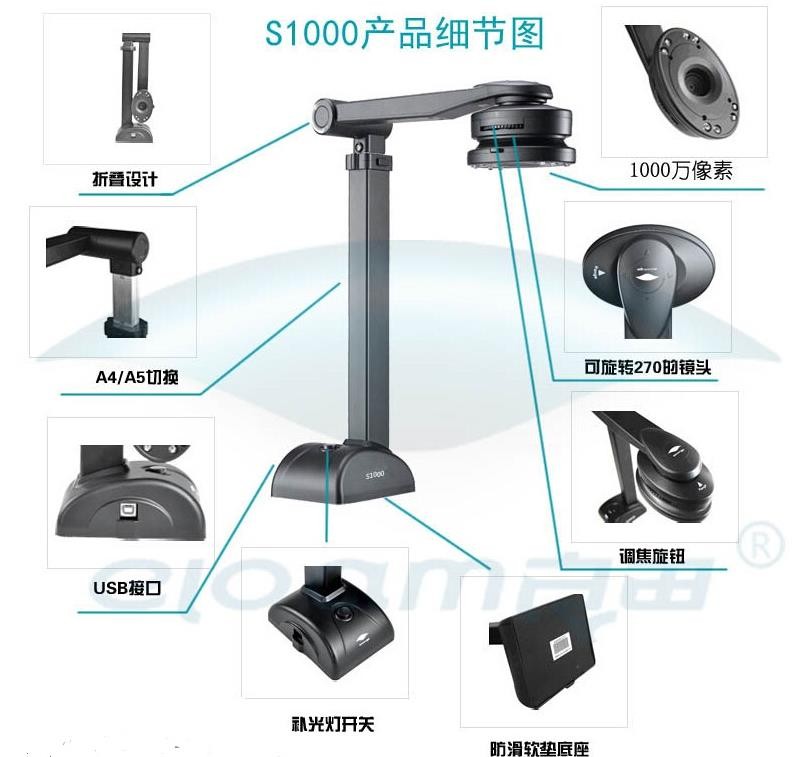 8,金屬機(jī)身,升降自如,穩(wěn)固耐用。270度旋轉(zhuǎn),拍攝更自由。超強(qiáng)的OCR文字識(shí)別功能,識(shí)別多達(dá)180多種語(yǔ)言。![]()