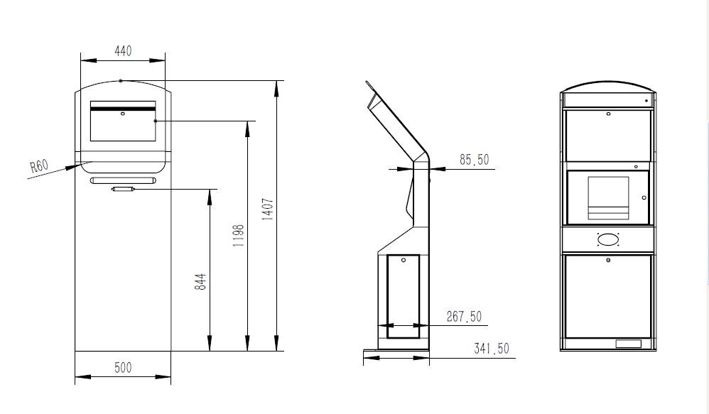 液晶屏(19吋)、觸摸屏(19吋)、主控(板載CPU1.8G以上,內(nèi)存DDR3/2G,16G固態(tài)硬盤(pán)/2.5寸,訊普熱敏憑條打印機(jī)、航嘉ATX電源;尺寸:1380*500*375mm 重量:58kg 顏色:灰 |